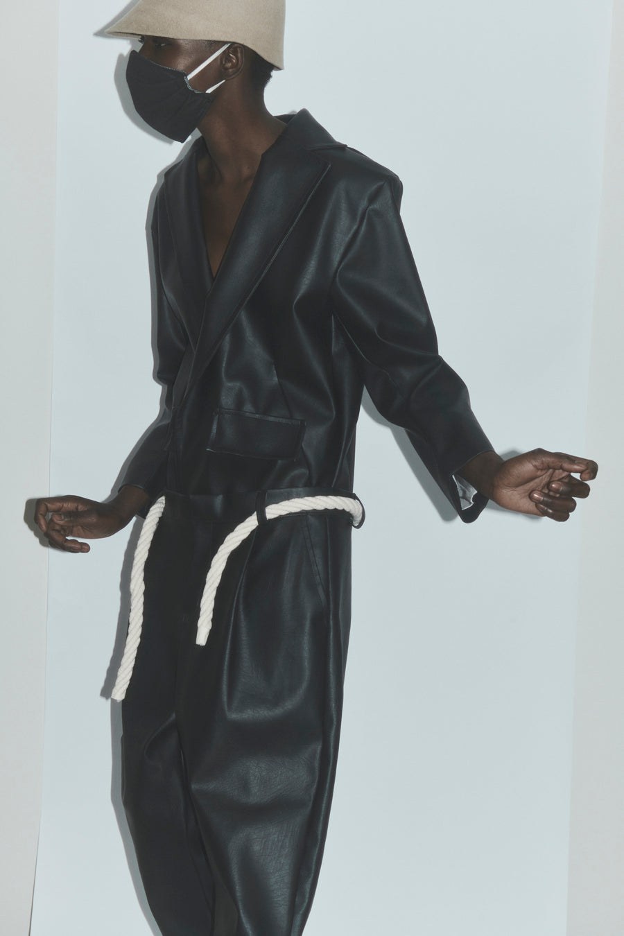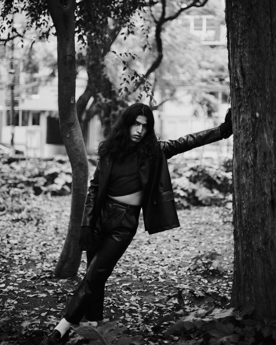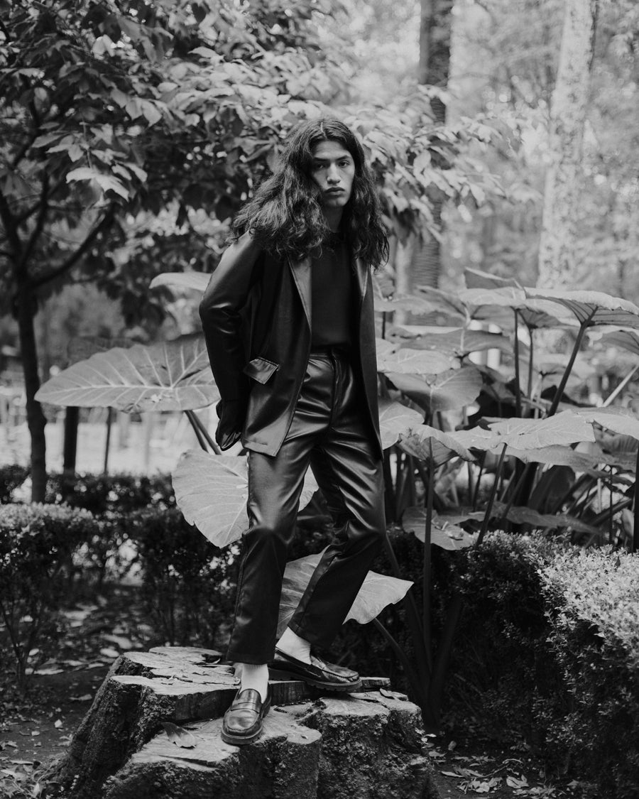 We introduce this classic-cut blazer with sporty vibes, part of VOL. II: From the end of the world. With a casual, sporty style, it is made from VINYLIFE biodegradable vinyl leather produced by Caimi in Chile, designed for the nomad of the new era.